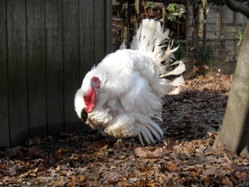 Timmy was one of three rescued turkeys who came to live here. More on factory farmed turkeys.