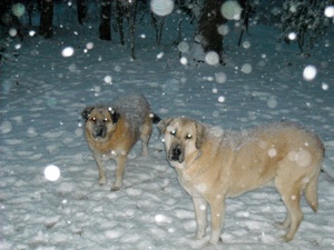 Sanctuary dogs Rex and Max (also rescues) take a break from playing in a rare snowfall.